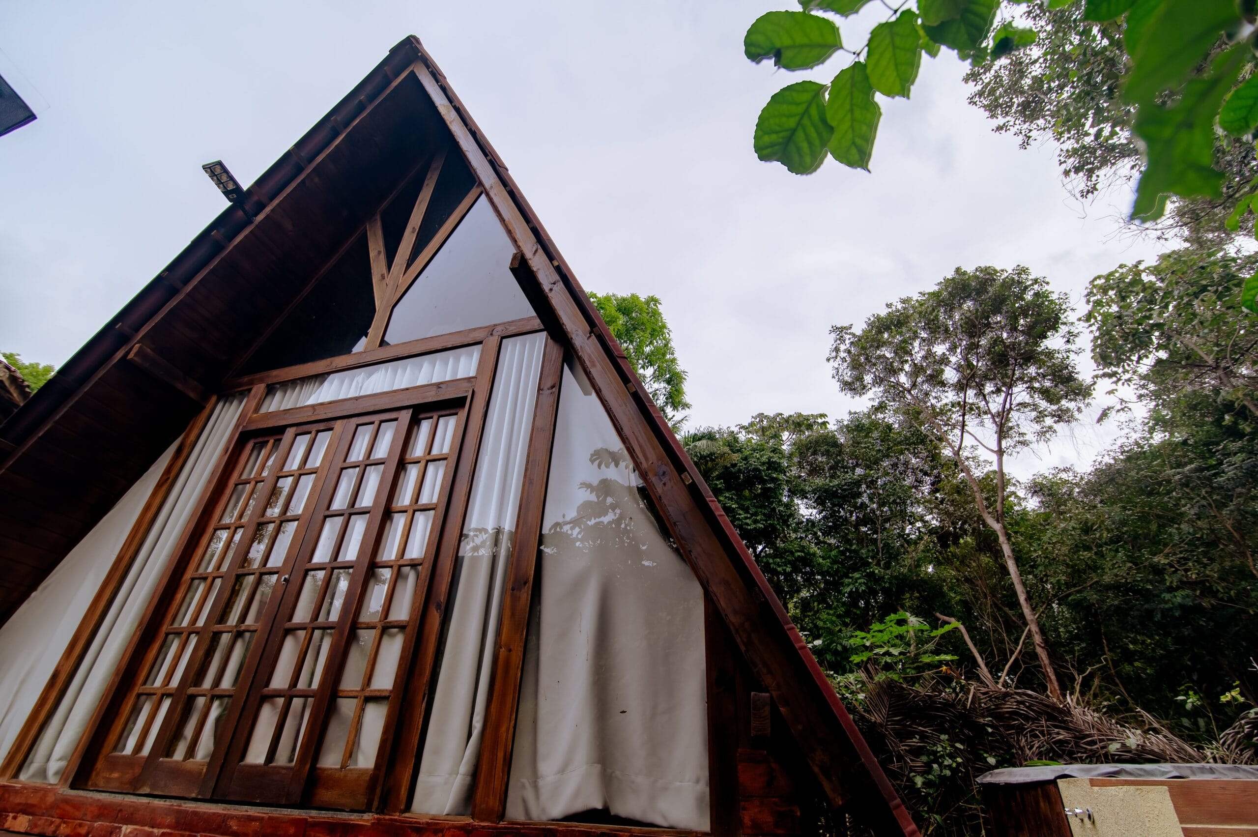 O Bangalô Safira acomoda até 4 pessoas com jacuzzi no andar superior.